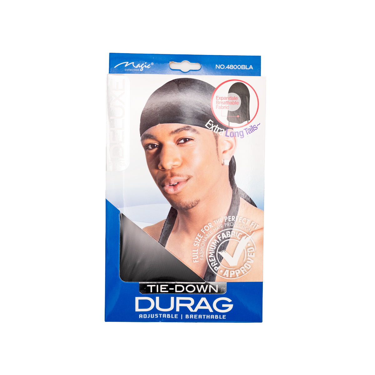 Magic Collection Tie-Down Durag Black With Extra Long Tails